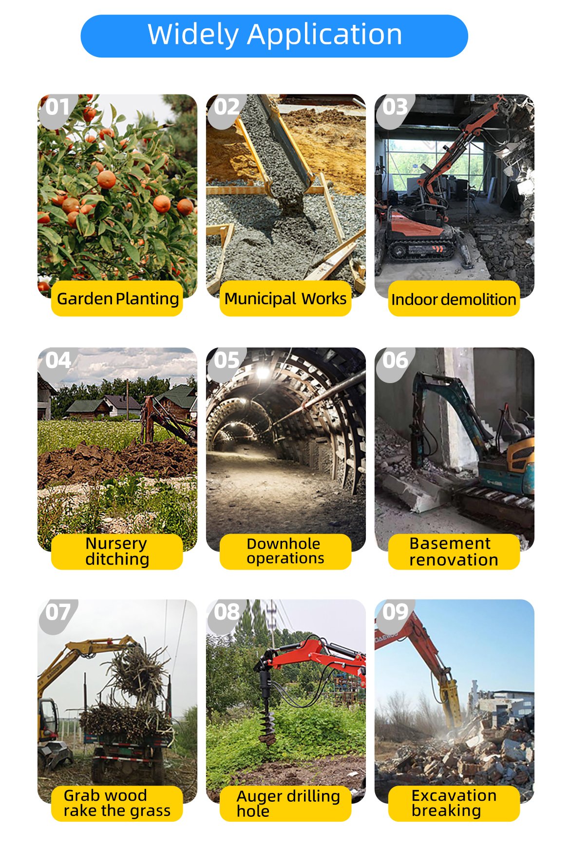 The entire vehicle adopts a molded appearance, which is durable and in line with public aesthetics. It is also convenient for maintenance and repair. It has a four-leg anti-roll roof. The entire vehicle is made of Q355 manganese steel plate, variable plunger pump, load-sensitive multi-way valve, and the action is soft and efficient.
